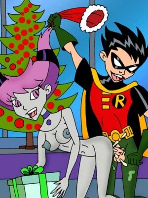 Man, is the cast of Teen Titans ever-expanding, or something? It feels like every time that I make a Teen Titans porn gallery, there are more characters that I don’t recognize and have to look up. This could easily be remedied if I ever remembered to watch the show, but I pretty much have the worst memory ever and I barely even remember to keep up with the shows that I already watch, so… not terribly likely. Anyhow, this time around it’s a Christmas comic celebration, Teen Titans style – featuring Beast Boy and Robin unwrapping their x-rated X-mas gifts… in the form of Starfire, Terra, Jinx, and Blackfire (those last two are the ones that I had to look up, if you were curious). If you want to see the rest of the “festivities” – including appearances from other characters – you can find more at the source, Online SuperHeroes!